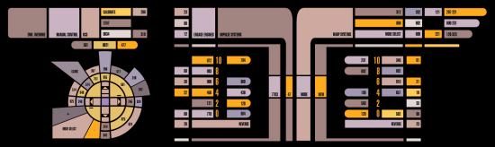 Here is your chance to put yourself in the 24th Century with these LCARS Operational Display Panels. The MSDs are printed on high quality archival paper at a HD-DPI of 1440x720 then encased in a durable laminate. The panels are perfect for backlighting or just display.